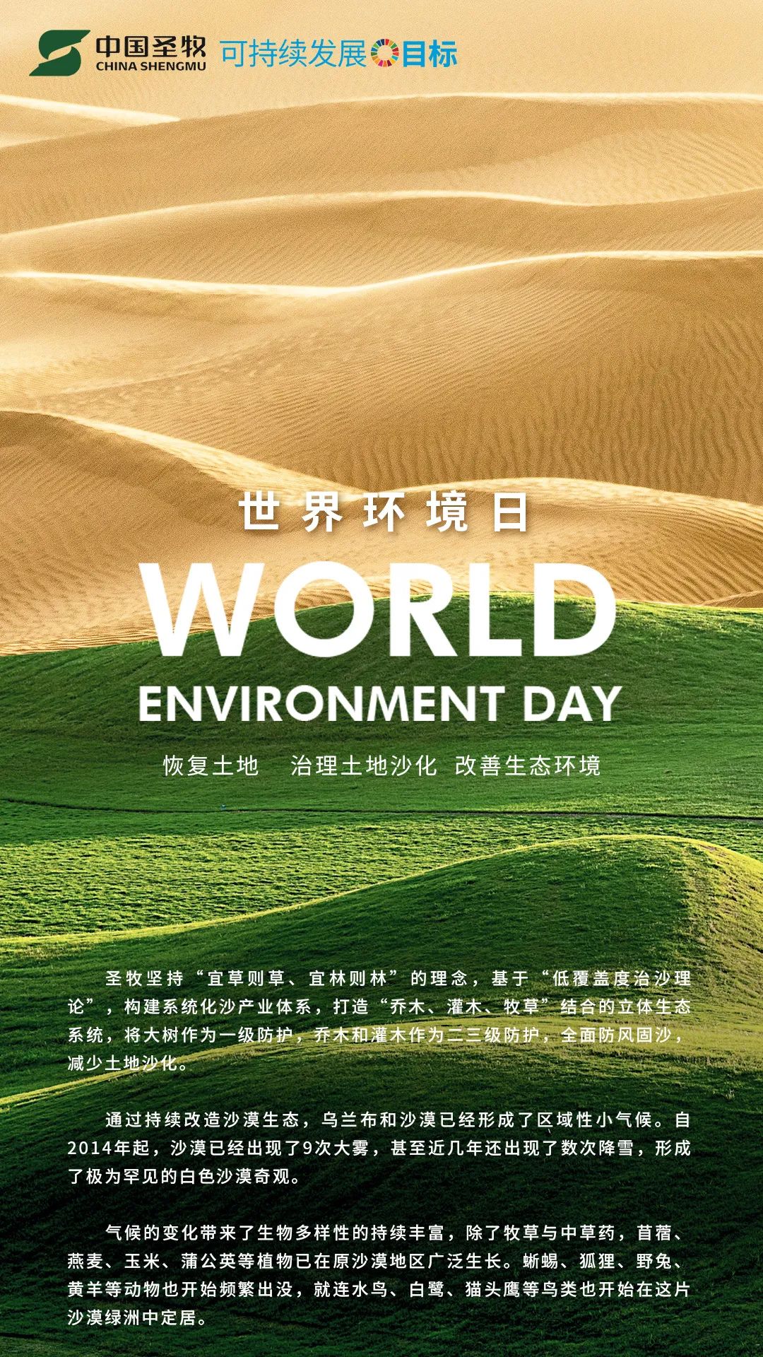 推行產(chǎn)業(yè)治沙,通過(guò)種植樹(shù)木、建設有機草場(chǎng),變沙漠為綠洲,筑成了沙漠中的有機生態(tài)圈,改善了當地的生態(tài)環(huán)境和生物多樣性,提高了適應氣候變化的能力。